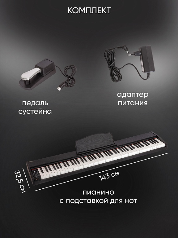 цифровое пианино, сетевой адаптер, руководство по эксплуатации, гарантийный талон