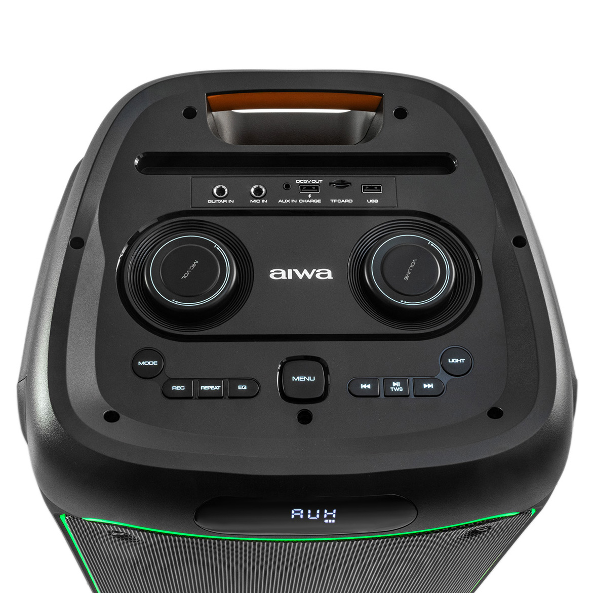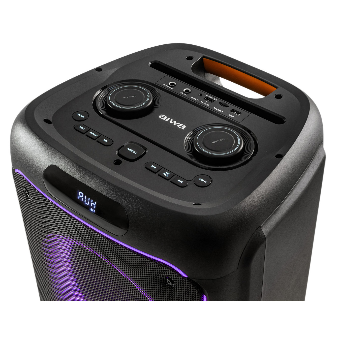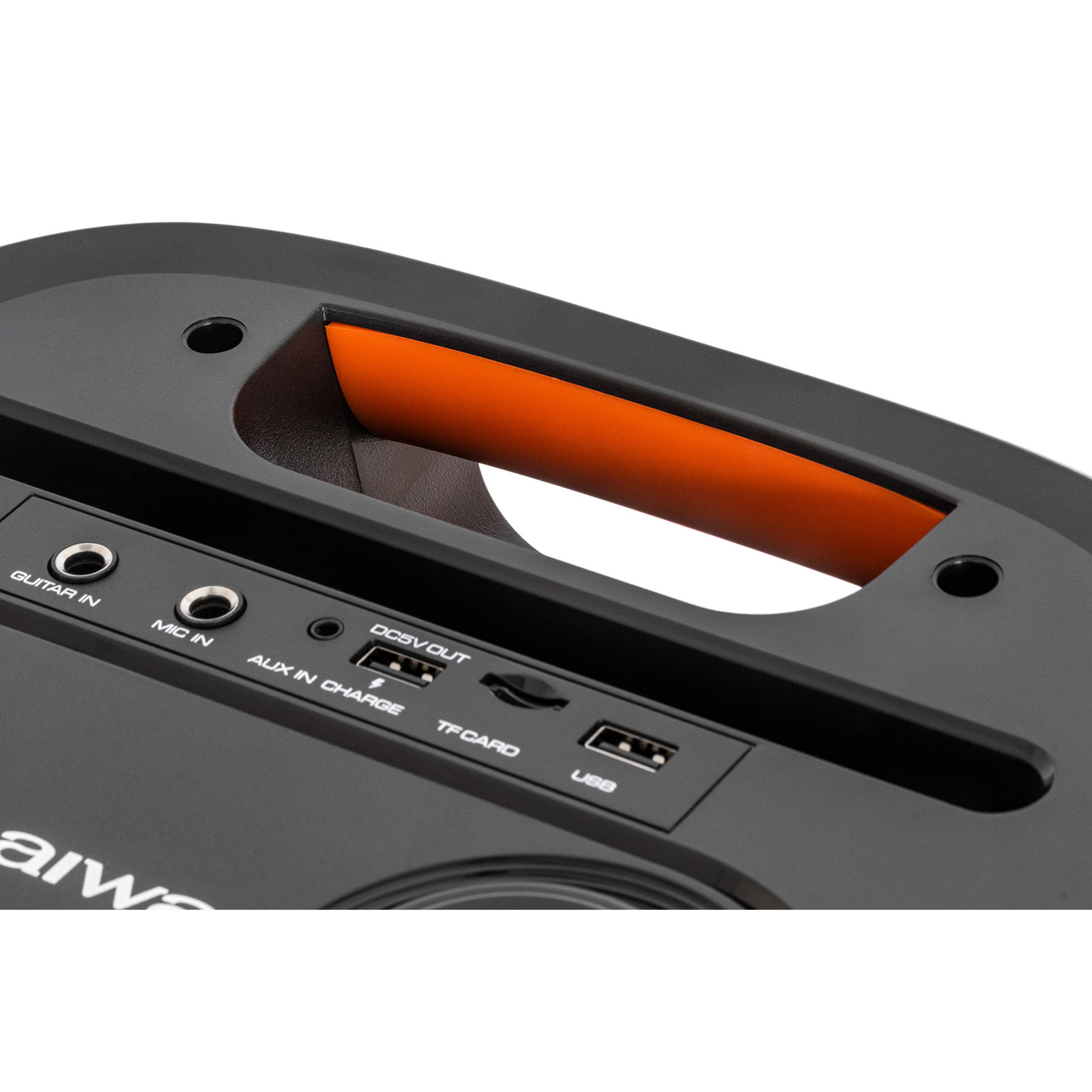 USB 5V 2A, входа для микрофона, вход для гитары, AUX, вход для TF карты