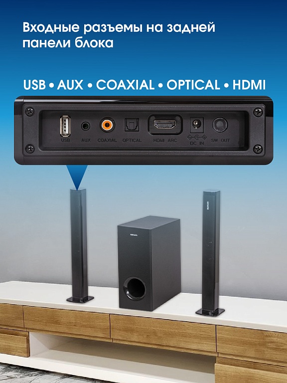 цифровой HDMI (ARC) и Optical вход, линейный вход