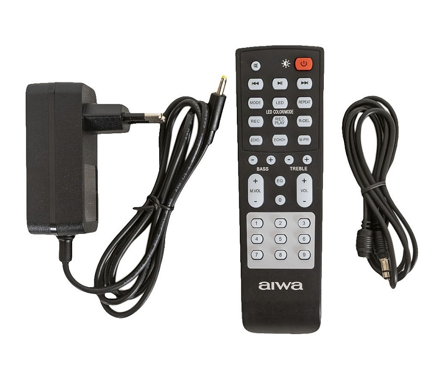 Пульт ДУ, адаптер питания и аудиокабель в комплекте