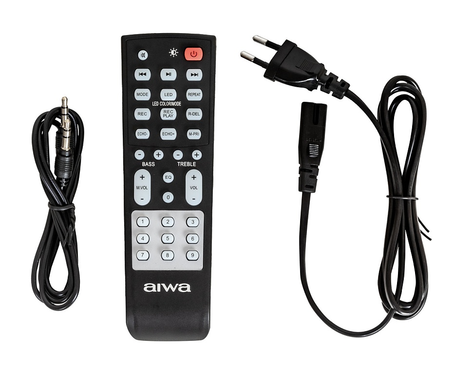 Пульт ДУ, кабель для внешнего питания и аудиокабель в комплекте