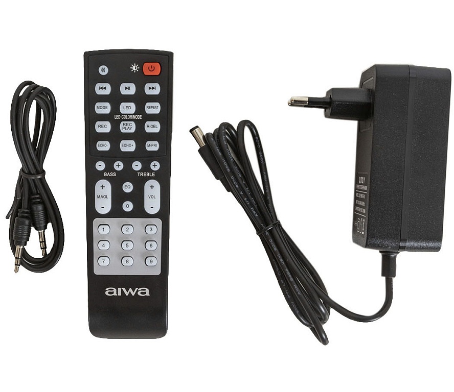 Пульт ДУ, адаптер питания и аудиокабель в комплекте