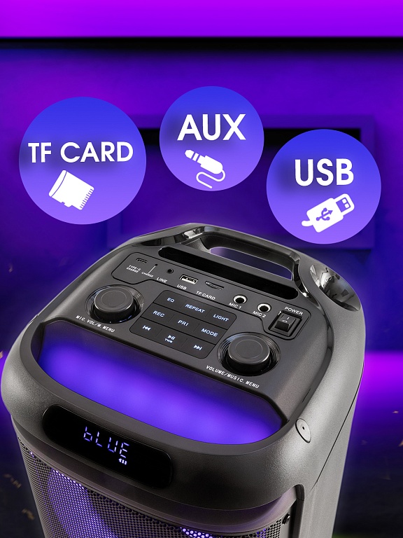 Широкий выбор разъемов: USB Type C для зарядки батареи, аудиовход, USB для подключения внешних источников, разъем для карты памяти TF (MicroSD), 2 разъема для подключения микрофона