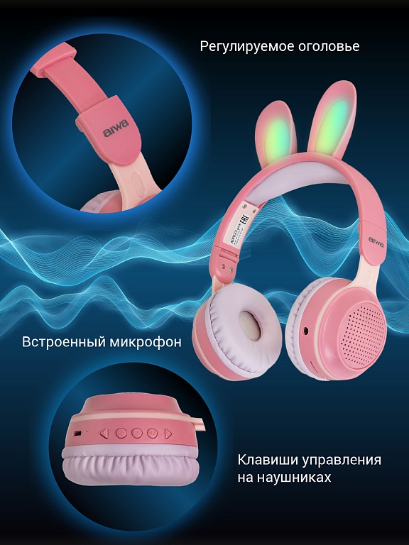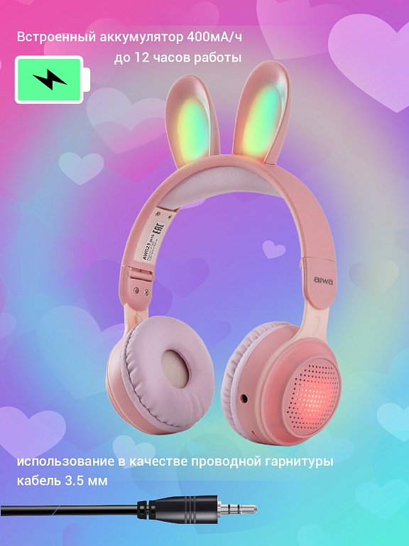 Яркие и оригинальные беспроводные светящиеся наушники AIWA с забавными ушками зайца подойдут каждому ребенку и станут отличным подарком на день рождения или Новый год.